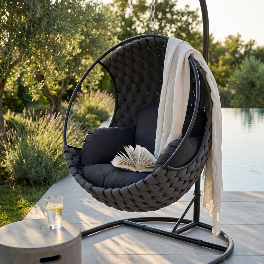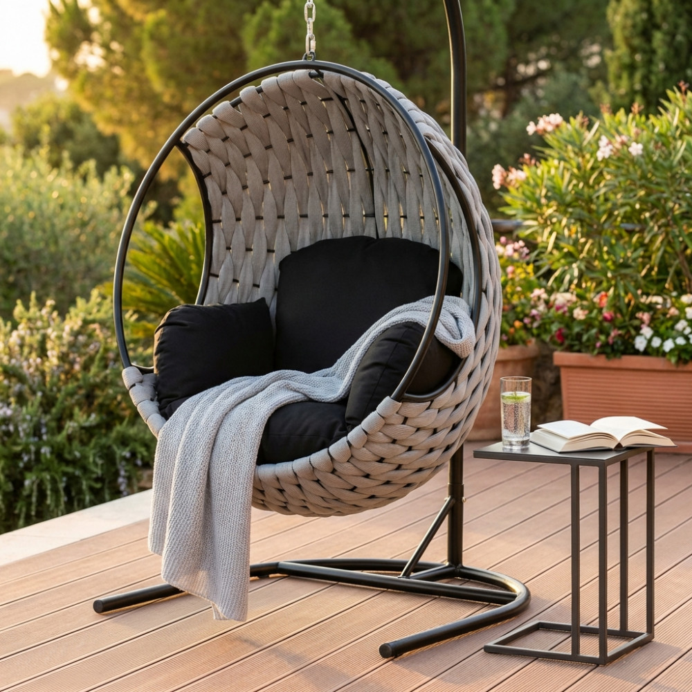 Poltrona sospesa da giardino a dondolo in fibra sintetica
