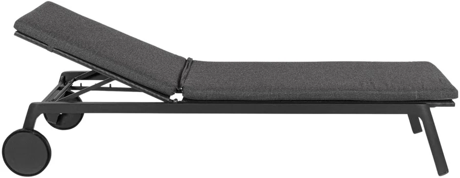 Lettino completo di cuscini idrorepellente con ruote schienale reclinabile con 4 posizioni.