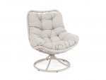 Poltrona da esterno girevole struttura in alluminio rivestimento in corda con cuscino idrorepellente.